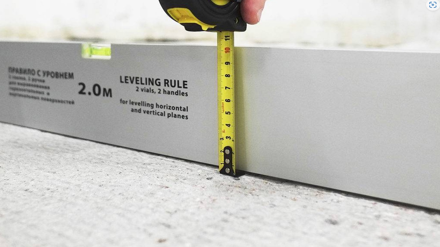 Для проверки ровности основания используйте уровень. Максимальная допустимая неровность — 2 мм на 2 м. Если вы обнаружили большие перепады, рекомендуется провести стяжку.